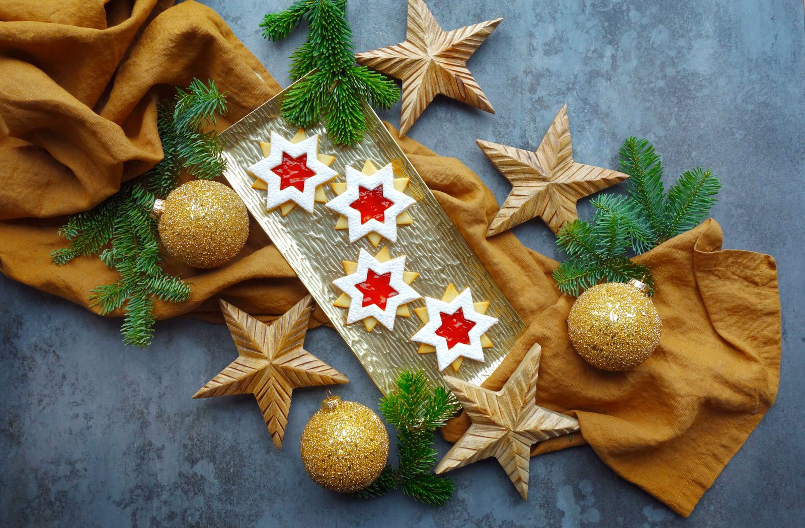 Po vychlazení těsta necháme nejdříve chvíli povolit a vyválíme na co nejméně pomoučeném vále (nebo mezi listy pečícího papíru) na plát o síle cca 3 mm. Vykrajujeme oblíbené tvary, v každém druhém uděláme ještě výkroj uprostřed, ale až na plechu, aby se horní díl nedeformoval přenosem. Pečeme na plechu vyloženém pečícím papírem nebo na perforované podložce na 175°, cca 6 minut dle trouby, jakmile začnou růžovět okraje, plech vytáhneme.