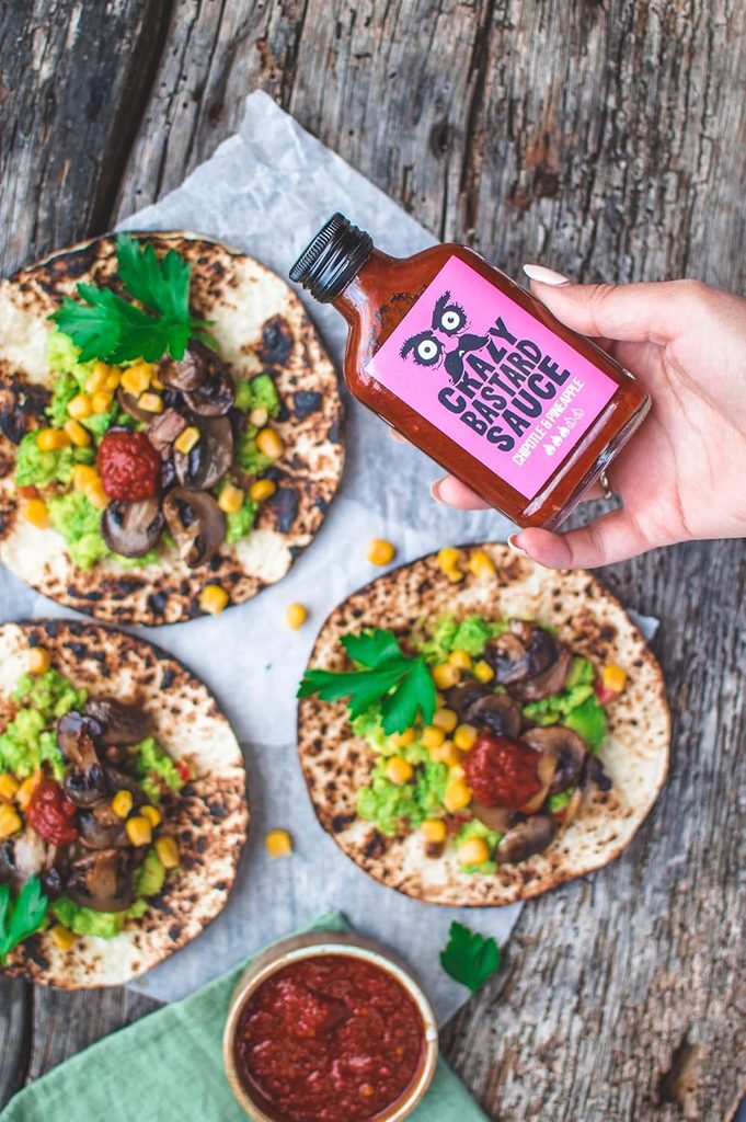 omáčka ve stylu mexického barbecue „al pastor“. Složení: cibule, papriky, ananas (17%), ocet, jalapeños, limetky, chipotle chilli (1,7%), olivový olej, mořská sůl.