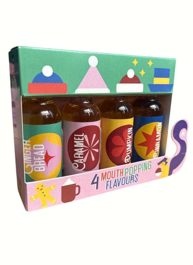 Čtyři speciální sirupy inspirované Vánocemi v barevném svátečním balení: perníkový, karamelový, skořicový a dýňový. Perfektní doplněk do kávy, čaje, dezertů nebo kreativních nápojů. Stačí jedna kapka a máte sváteční náladu.