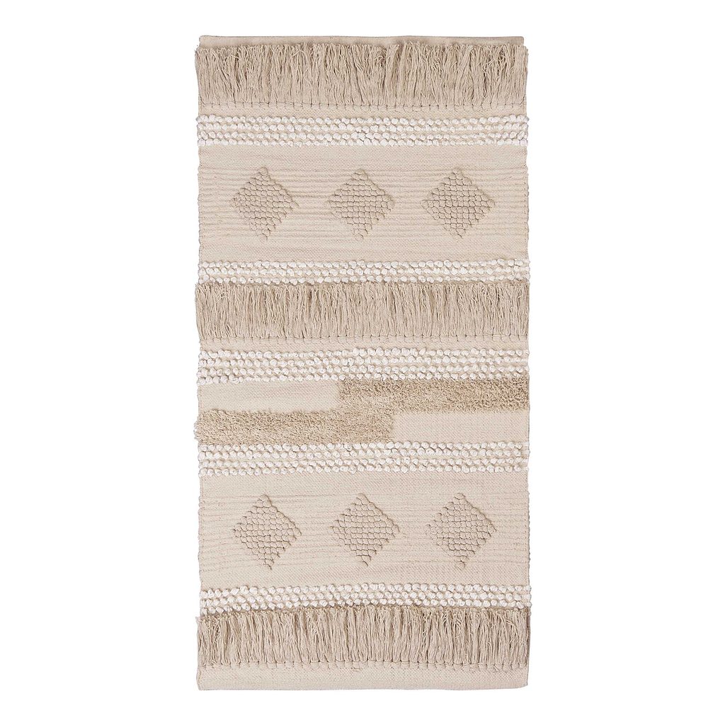 Střapce, bambulky a zdobné smyčky a decentní etno vzor, více boho stylu už snad ani není možné. Autentický vzhled tohoto krémově zbarveného ALL NATURE koberce vyniká díky bohatému ručně zpracovanému mustru. Koberec 70 x 140 cm z čisté bavlny završí Váš trendy interiér a dodá pocit domova každé místnosti. K dostání další koberce z řady ALL NATURE.