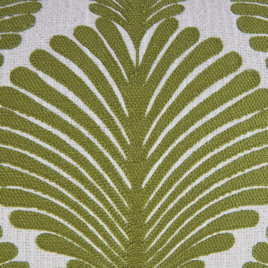 Polštář GAIA s vyšívanými zelenými listy vnáší do obývacího pokoje nebo ložnice svěžest i styl zároveň.