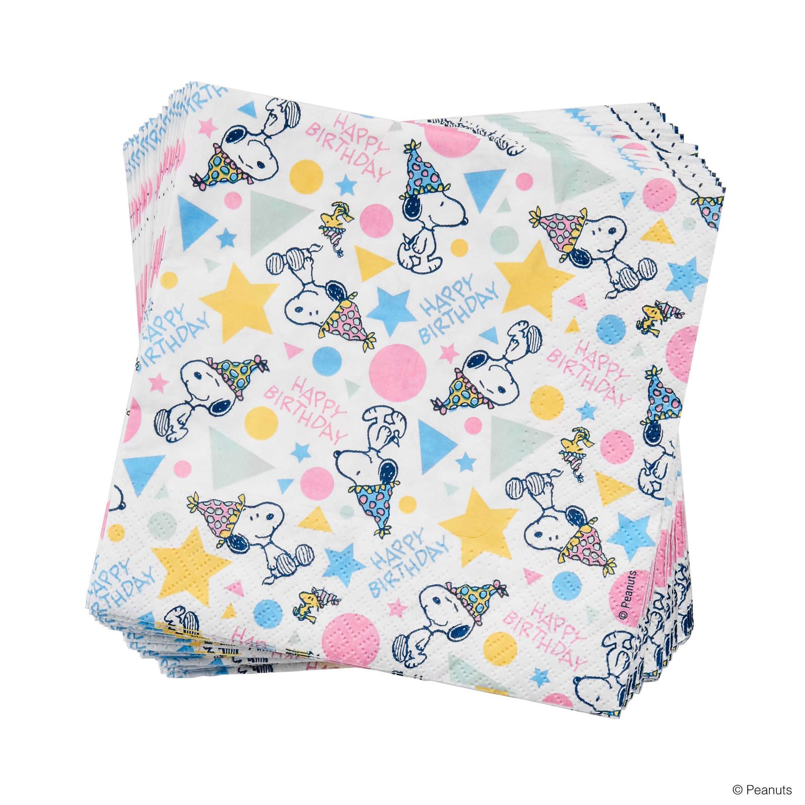 S těmito barevnými papírovými ubrousky "Happy Birthday" z řady PEANUTS si díky Snoopymu zpříjemníte Vaši veselou narozeninovou oslavu. Už žádný den bez Snoopyho a jeho životních peripetií: téměř 50 let inspiroval každý den Charles M. Schulz své věrné čtenáře novými příběhy nešťastného Charlieho Browna, jeho svéhlavého psa Snoopyho a ostatních postaviček. Nyní se celý gang vrací do akce, a to v exkluzivní řadě Peanuts od Butlers. Na nádobí, ubrouskách, kuchyňských potřebách, bytových doplňcích, dárkových taškách, sešitech a samozřejmě na plyšových hračkách se budou Vaše oblíbené postavy cítit jako doma. I když si Charlie Brown někdy postěžuje: "Nikdo mě má rád." a Lucy van Pelt zděšeně poznamená: "Ten pes mě políbil!"