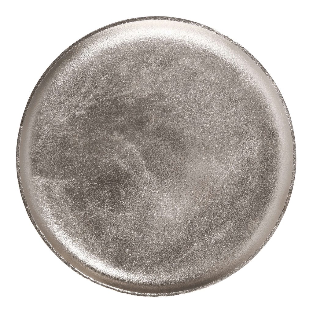 Tyto banketové mísy a talíře se svým stříbrným leskem a strukturovaným povrchem by mohly pocházet z minulého století. A přesně v tomto stylu můžete dekorovat i váš stůl či místnost, ať už talíř ozdobíte oříšky, sušenými šiškami či jinými ozdobami nebo jej naplníte lahodným vánočním cukrovím. Z poniklovaného hliníku s měkkými polštřky vespod.