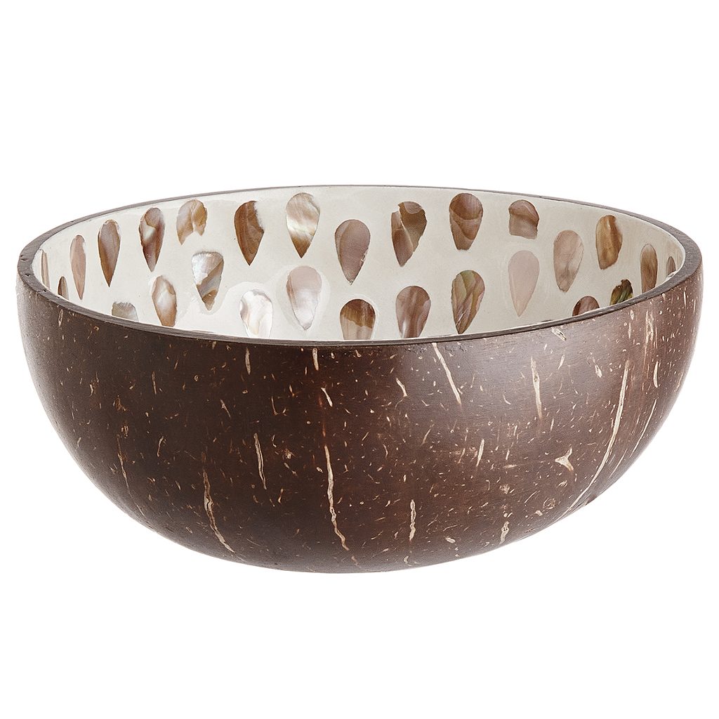 Dekorativní miska COCONUT byla ručně vyrobena ve Vietnamu s použitím perleti a kamenného prášku k vytvoření propracovaného ornamentu uvnitř misky. Perleť se na světle krásně třpytí, proto je ideální použít ji jako svícen spolu s čajovou svíčkou. Nebo ji můžete využít například k uložení šperků. K dispozici další varianty.