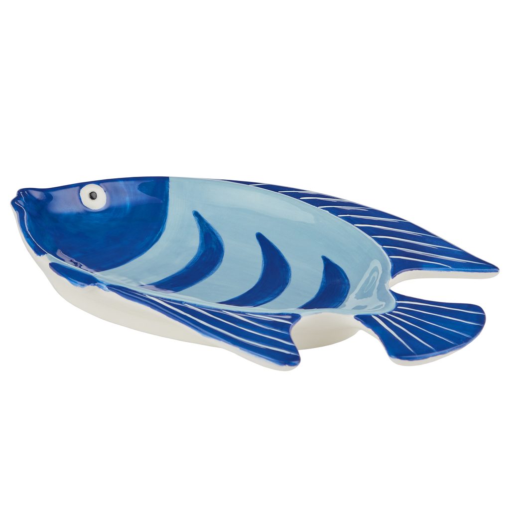 Keramický dekorační talíř TAVERNA ve tvaru ryby přináší do interiéru svěží a uvolněnou atmosféru evokující pobyt u moře. Pečlivě zpracované detaily a barevné odstíny dodávají prostoru pocit klidu a zároveň mu propůjčují hravý a originální charakter.