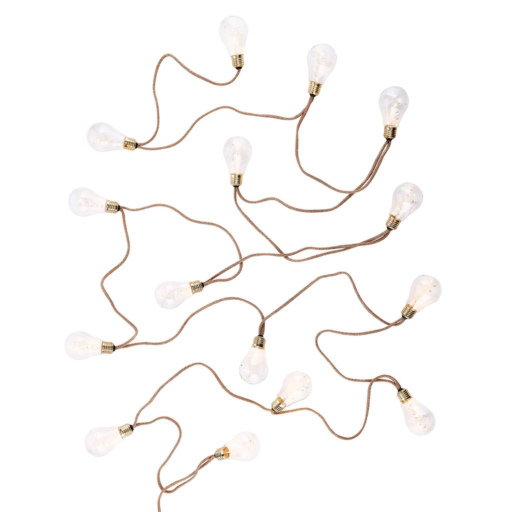 Světelný řetěz BULB LIGHTS vnese se svými 15 LED světýlky ve vzhledu žárovek pořádný závan vintage retra do Vašich 4 stěn. Objevte tónované svítící žárovky jako zdroj příjemného světla. Ať už coby kouzelné zimní vánoční osvětlení nebo v horkých dnech jako efektní zdroj světla na Vašem balkóně či terase. Každý večer může být přeci příjemný a jedinečný!