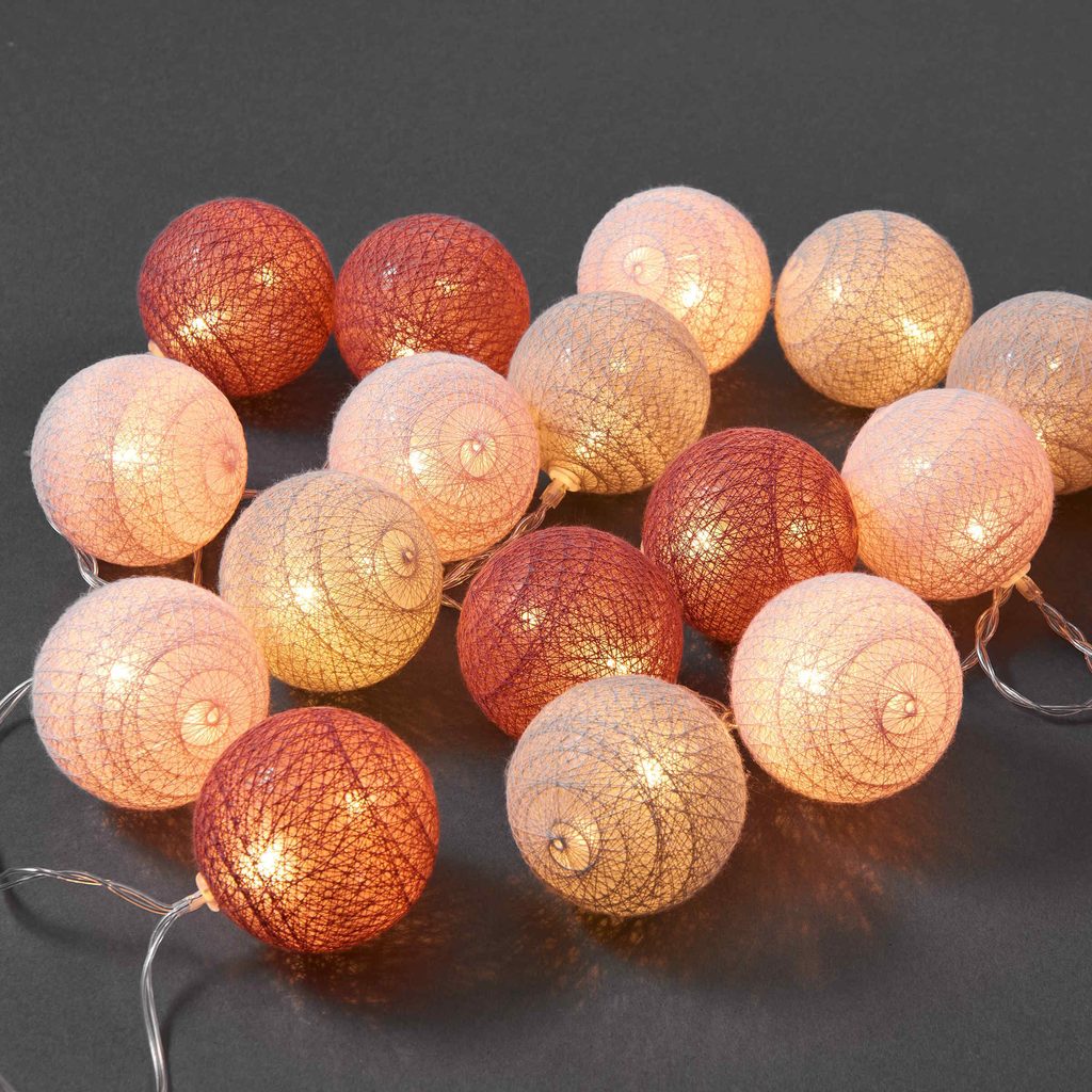 Světelný řetěz LES BELLES čítá 20 lehce červených koulí a je prostě k pokoukání. Každá koule skrývá světlo, které jemně vykouzlí třpytivé odlesky. Ideální na příjemné chvilky doma nebo jako party dekorace. K dostání v dalších barvách.