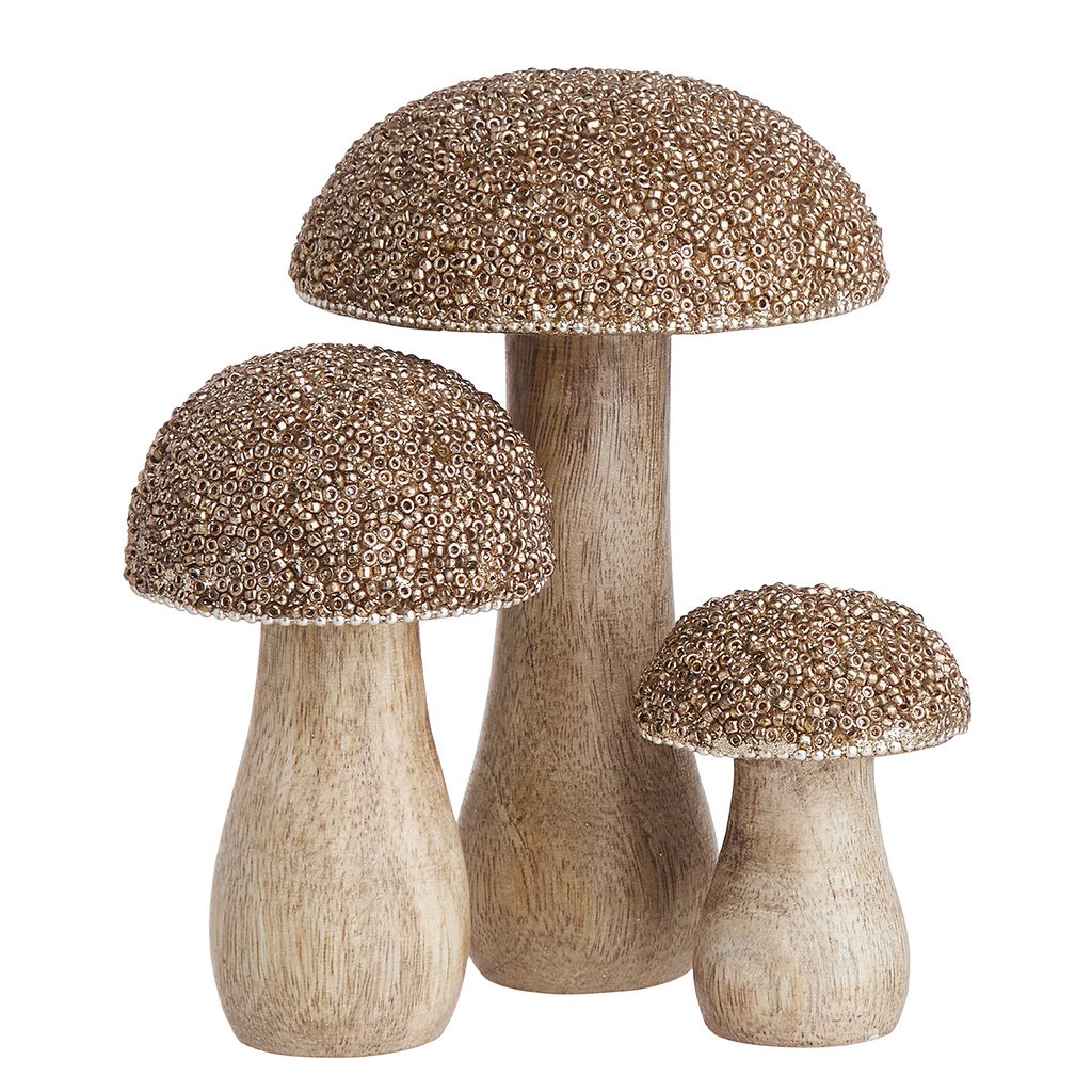 Třpytivé houby HARVEST LOVE nečekají v lese, ale v BUTLERS. Houby z mangového dřeva zdobené zlatými korálky vnesou do Vašeho domova atmosféru lesních procházek. Jsou k dispozici v několika velikostech, spolu totiž vypadají ještě lépe.