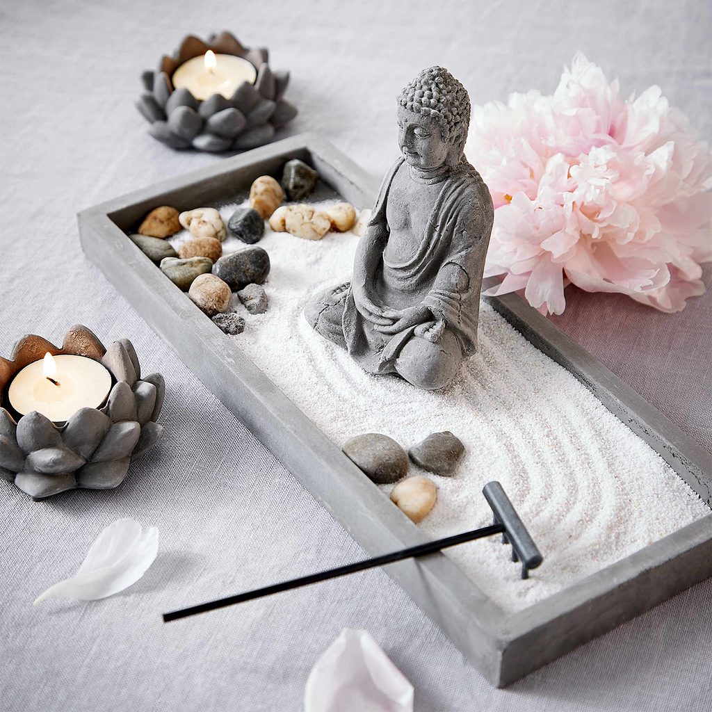 Tato písková mini zahrádka SECRET GARDEN se stane Vaší odpočinkovou oázou od shonu každodenního života. V Japonsku mají takové zen zahrádky, ať už v malé nebo velké variantě, dlouhou tradici. Bílý písek symbolizuje moře a kamínky představují hory. Meditativní zahradničení a pozorování Vás uklidní, posílí koncentraci a podnítí kreativitu. Tuto příjemnou atmosféru jistě oceníte jak doma, tak v kanceláři.