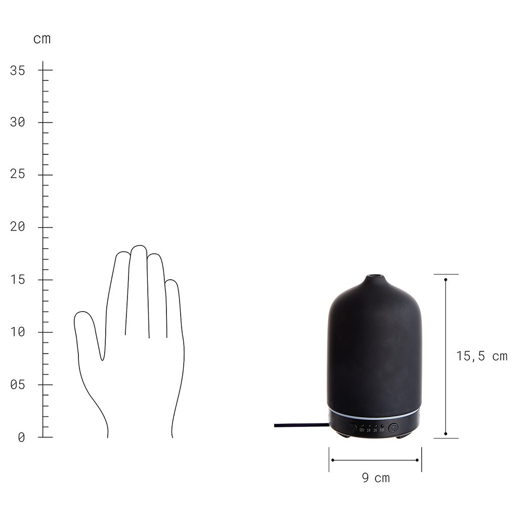 Aroma difuzér CLOUD NINE s černě zbarveným keramickým krytem je jako stvořený pro to, aby Váš domov naplnil povznášející vůní éterických olejů. Jeho použití je velmi jednoduché: naplňte nádržku na vodu po rysku, přidejte několik kapek esenciálního oleje, spusťte difuzér a nechte se okouzlit vůní. Abyste opojný zážitek ještě více umocnili, zapněte na difuzéru světelnou funkci. Se sedmi nastavitelnými LED barvami vytvoříte jedinečnou uklidňující atmosféru.