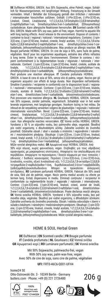 Materiál: borovice s certifikátem FSC®, sójový vosk, parafín, sklo