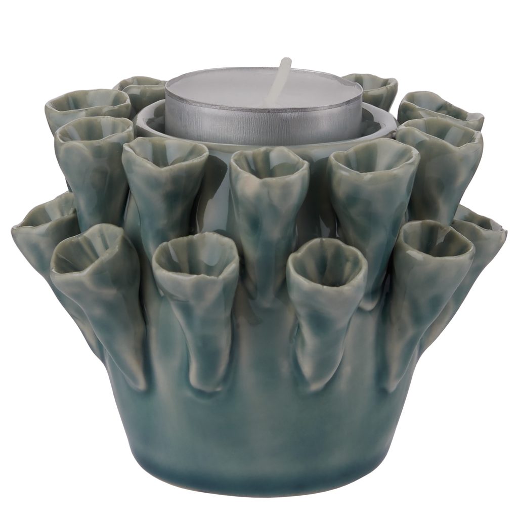 Svícen na čajovou svíčku CORAL je inspirován organickými tvary podmořského světa. Vyroben je z kameniny a jeho jedinečný povrch spolu s přirozenými liniemi z něj činí zajímavý dekorativní kousek - ideální jak na prostřený stůl, tak pro vytvoření příjemné atmosféry v obývacím pokoji.