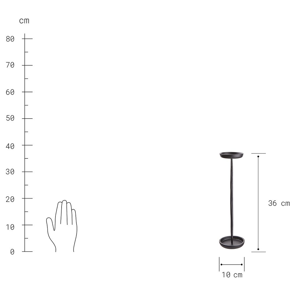 Černé železo, čistý tvar a ruční výroba: jednoduše jedinečný vzhled svícnu FAROL vyzařuje zvláštní atmosféru. Dá se dobře kombinovat například s doplňky v asijském stylu, boho vzhledem a přírodními materiály. Dostupné ve dvou velikostech.