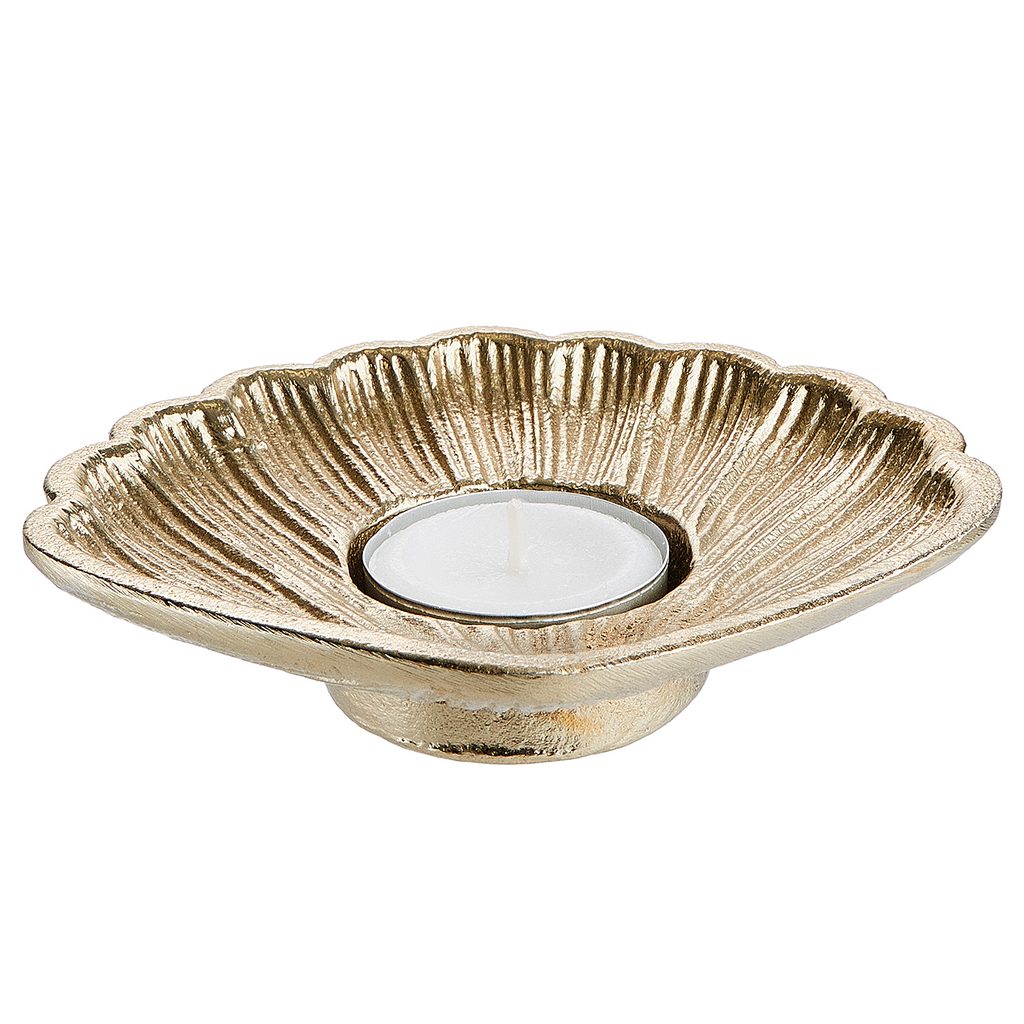Vytvořte si doma atmosféru luxusu a elegance se svícnem na čajovou svíčku GOLDEN NATURE. Tento nádherný svícen přináší nádech mořské inspirace a okouzlujícího třpytu do jakéhokoli interiéru. Dokonale zachytí světlo svíčky a rozzáří váš prostor teplým, zlatavým leskem. Ideální pro romantické večeře, relaxační večery nebo jako stylový dekorativní prvek na Vašem stole či poličce.