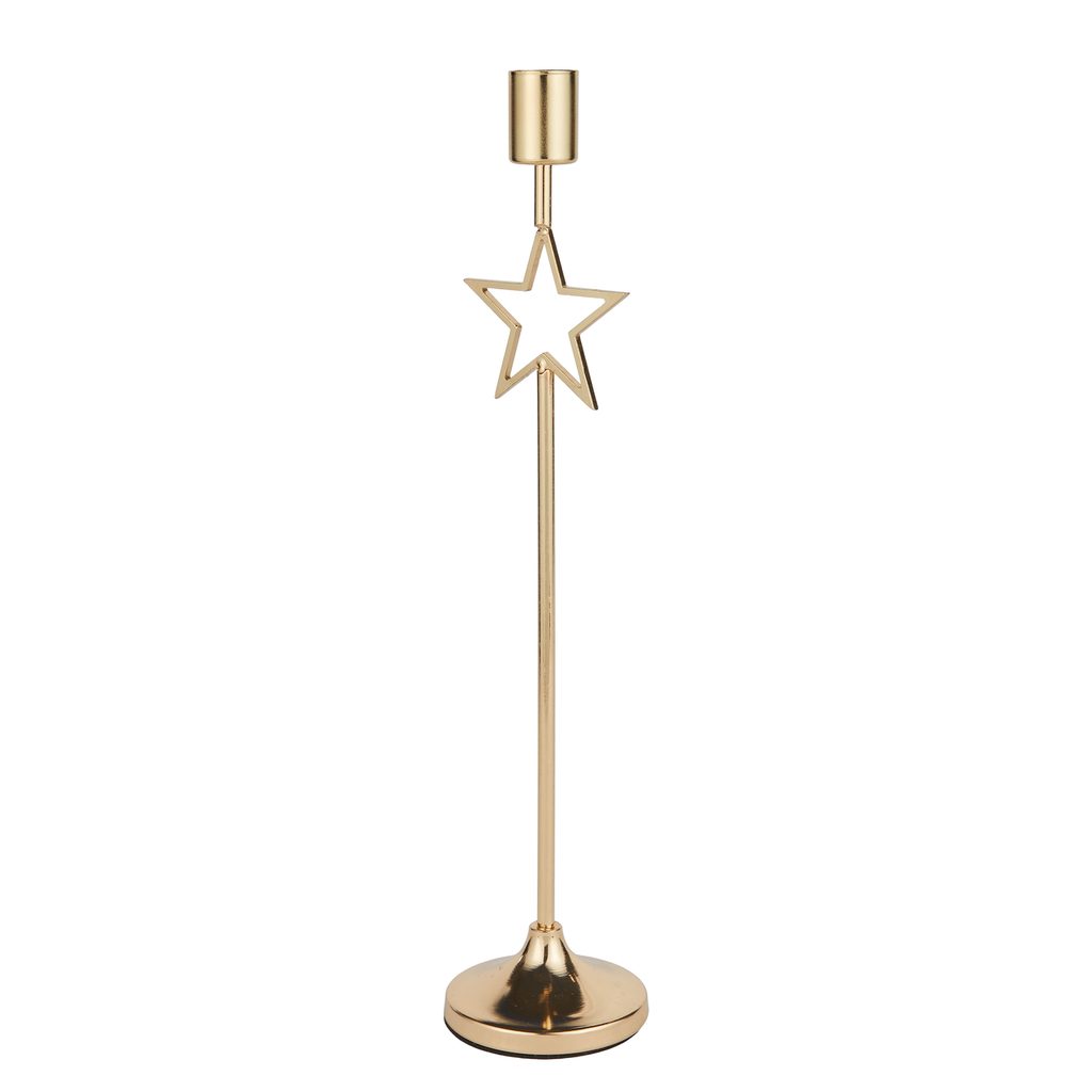 Tento kovový svícen zdobený hvězdou vnese na stůl útulnou záři a vánoční atmosféru - ať už při slavnostní večeři, nebo klidném večeru při svíčkách. Je dostupný i v dalších provedeních a snadno se kombinuje s dalšími kousky, díky čemuž působí elegantně i hravě zároveň.