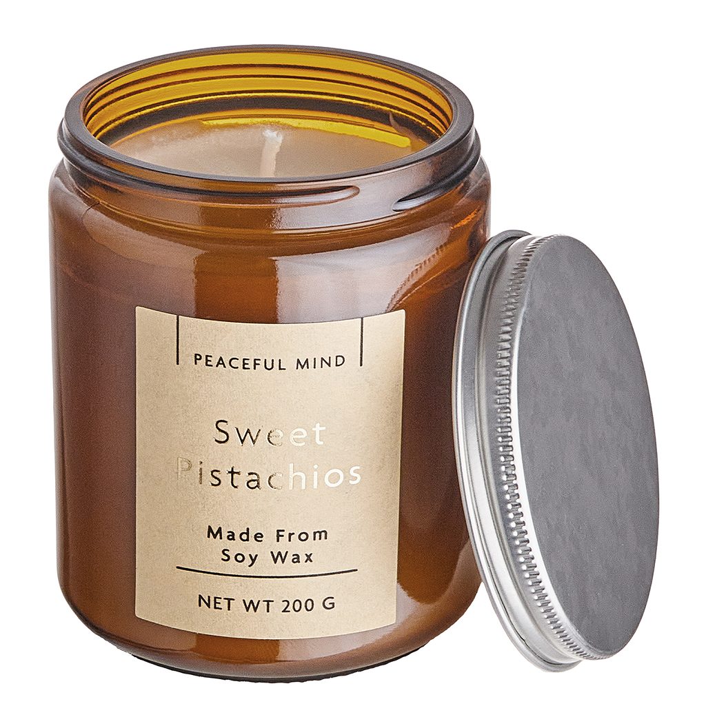 Vůně pro jemný nos a vyrovnanou mysl: vonná svíčka SCENTED CANDLE připomíná sladké pistácie. Svíčka obsahuje přírodní sójový vosk, aby bylo zajištěno, že hoří co nejpomaleji a bez kouře. Aby vůně vydržela dlouho je sklenice opatřena uzavíratelným víčkem.
