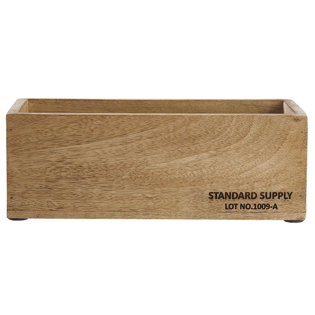 Co se pořádku a ukládání týče, poslouží jako žádná jiná. Dřevěná bedýnka STANDARD SUPPLY poskytne své služby coby odkládací a úložný prostor třeba v předsíni nebo na psacím stole. Nebo si s ručně vyrobenou truhlou z mangového dřeva vyzdobte jídelní stůl nebo příruční stolek. Samotná nebo s mušlemi či kamínky. Tak jako tak bude výsledek naprosto úchvatný. K dostání v dalších variantách.