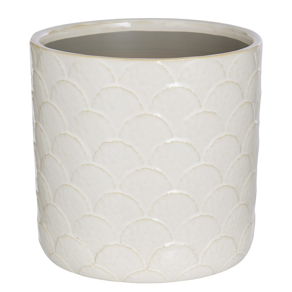 Květináč ARIA je nenápadně okouzlující svou mírně vypouklou strukturou a krémovou barvou. Vypadá skvěle s listy i květinami.