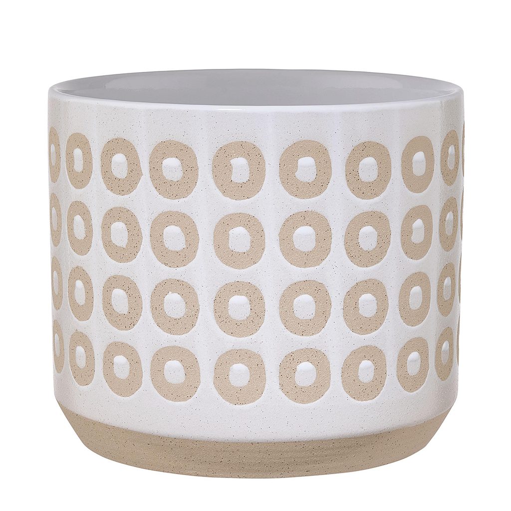 Jemný design tohoto květináče je jenom o kruhu: Květináč z bílé kameniny je zdoben hezkým vzorem a upoutá na každém parapetu, poličce nebo stolečku. S průměrem 25,5 cm a výškou přibližně 22 cm je vhodný i na větší bylinky, kaktusy, sukulenty nebo pro jakoukoliv jinou květinu, kterou si chcete nasadit.