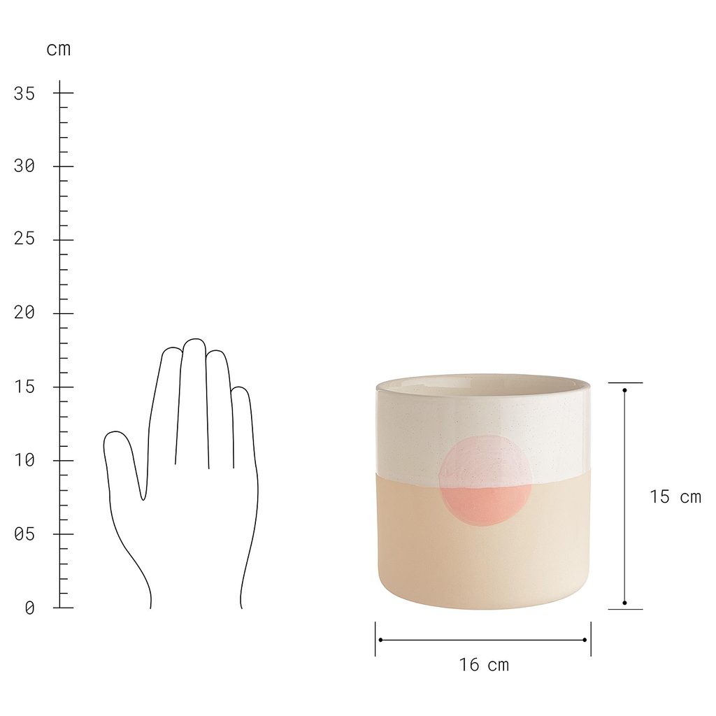 Na dekorativním kameninovém květináči SUNSET v béžové barvě vychází slunce v pastelově oranžové barvě. Takto krásně začíná každý den pro Vás a Váš domov. Dostupné v jiných velikostech.