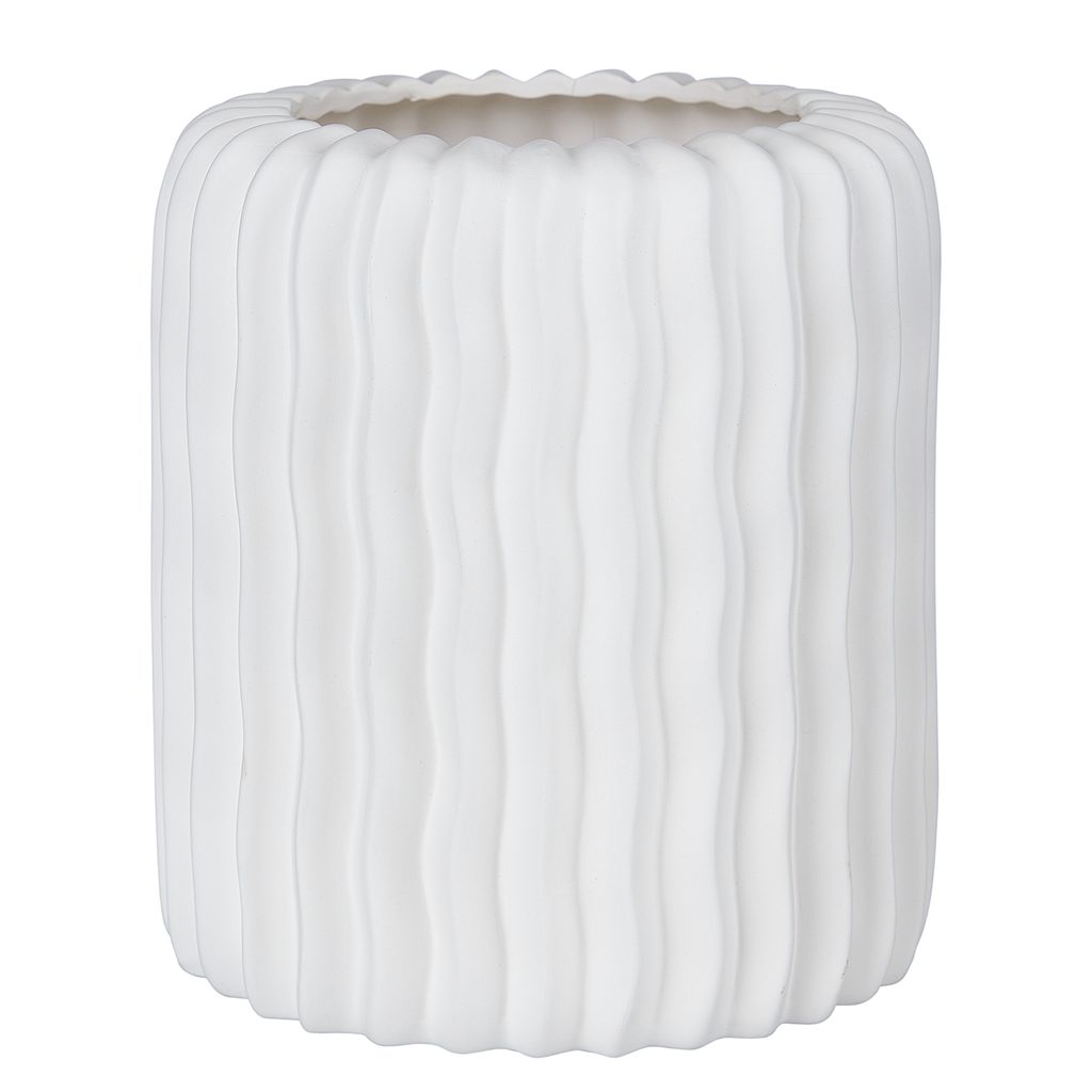Keramická váza BON-TON bude díky svým organickým vlnkám a jemnému bílému tónu ozdobou Vašeho domova. Stejně tak se hodí pro zvýraznění barevných květin a jemných sušených kytic, ať už na prostřeném stole, okenním parapetu nebo komodě.