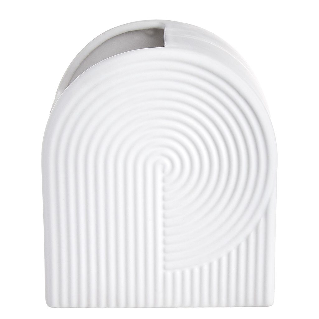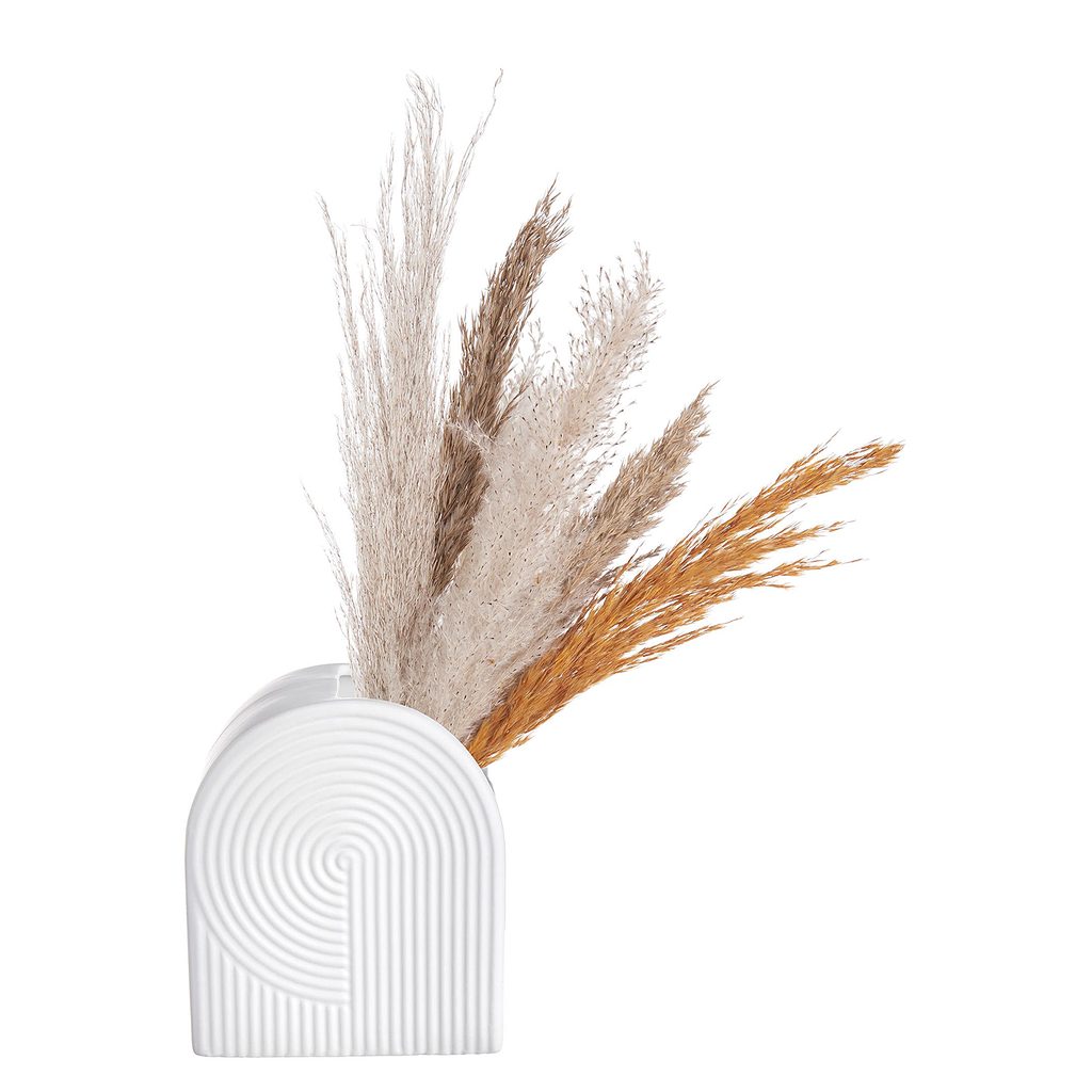 Klasický materiál, moderní tvar: krásné křivky kameninové vázy CURVE nadchnou milovníky designu. Tvar vázy je ozvláštněn rýhovaným povrchem - a neobvyklým otvorem posunutým doprava.