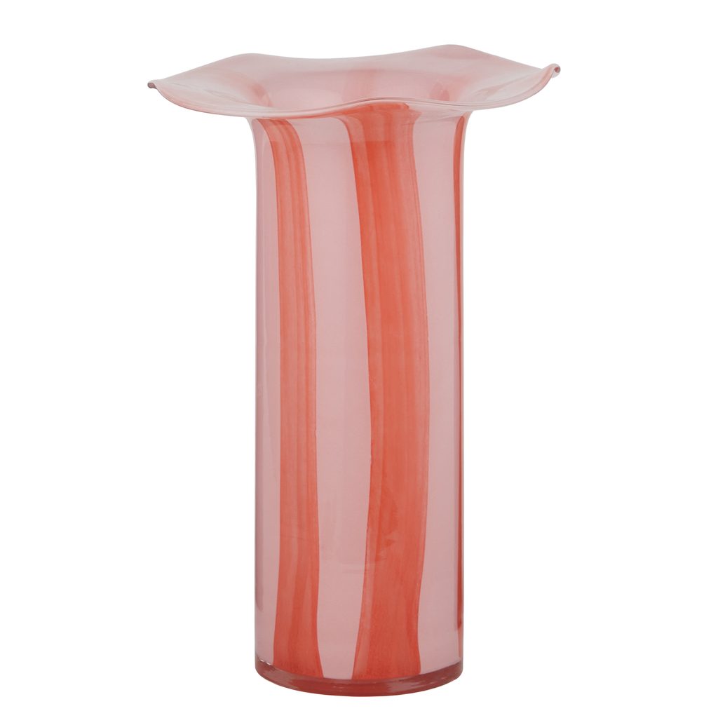 Váza Glory představuje to nejkrásnější z barevného sklářského umění: její štíhlý, vysoký tvar a organicky zvlněný okraj jí dodávají elegantní, ale zároveň hravý vzhled. Jemný přechod růžových a červených odstínů dodává váze jedinečný charakter, ať už do ní vložíte čerstvé nebo suché větve. I jediný kus se stane působivým středobodem vašeho domova – na komodě, stole nebo dekorativní podložce.