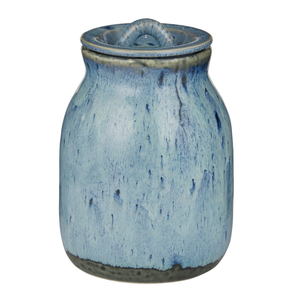 Kameninová dóza PORTIMAO se perfektně hodí k modernímu venkovskému stylu a je ideální například pro uchovávání a servírování soli či cukru. Tato dóza s víkem, jako doplněk stolu, přináší uvolněnou, domácí atmosféru a středomořský nádech. Reaktivní glazura se skvrnitým efektem činí každý kus jedinečným.