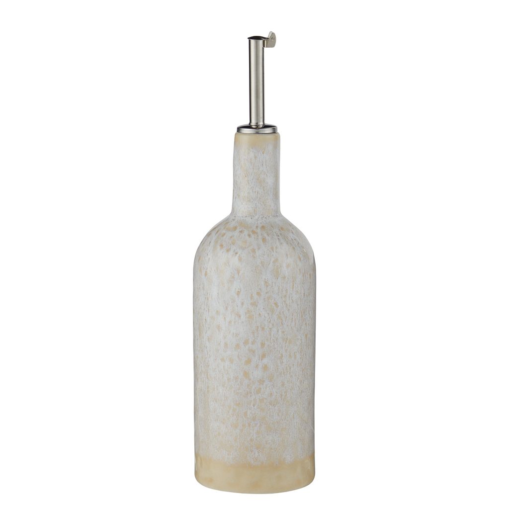 Kameninová láhev na olej a ocet PORTIMAO s nálevkou se perfektně hodí k modernímu venkovskému stylu a je ideální například pro servírování kvalitního olivového oleje nebo ovocného octa. Jako doplněk stolu přináší láhev uvolněnou, domácí atmosféru a středomořský nádech. Reaktivní glazura se skvrnitým efektem činí každý kus jedinečným.