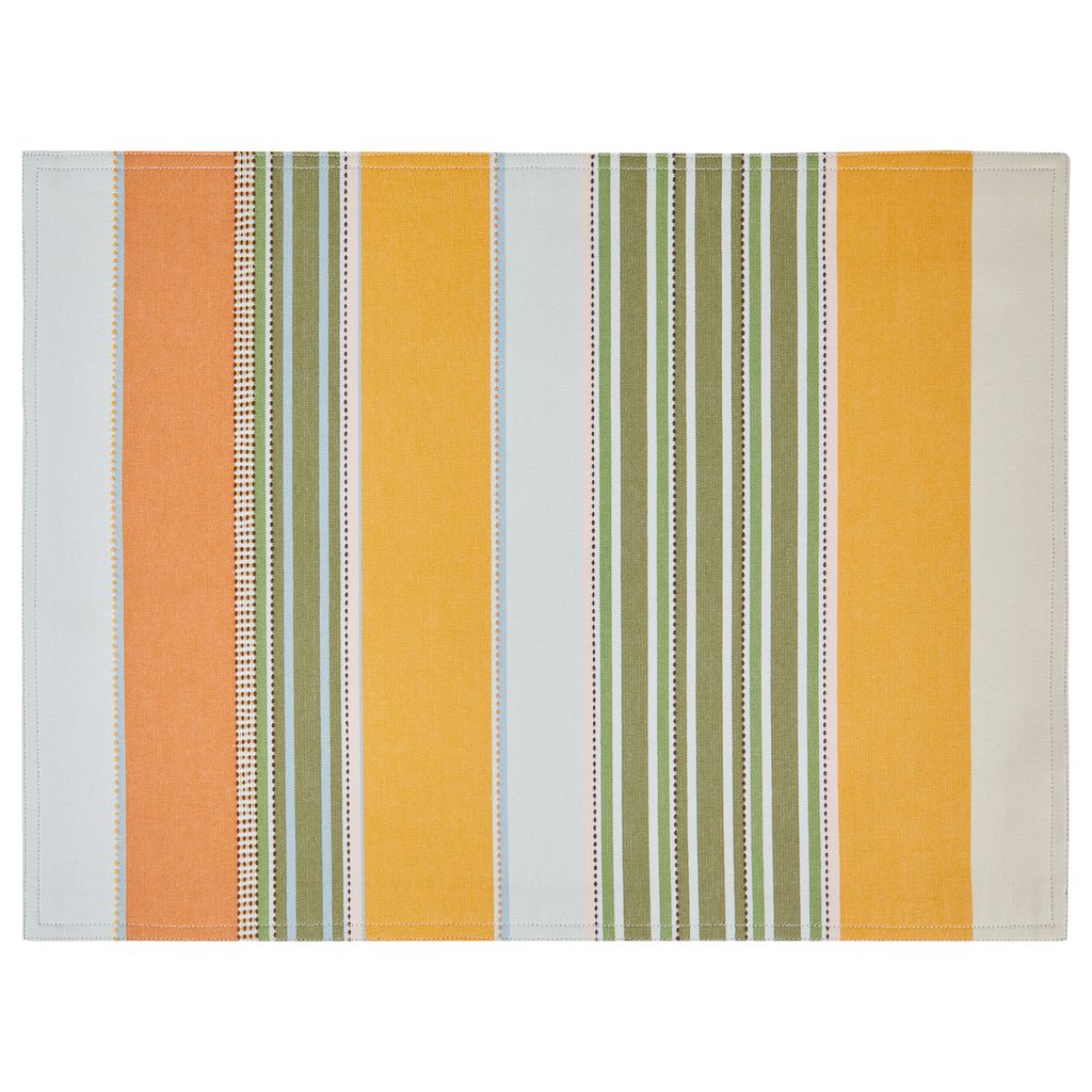 Textilní prostírání SUPPER CLUB se vyznačuje pruhy různé šířky a svěžími letními barvami, ideálními pro stolování. Prostírání vnese do Vašeho domova slunečný a příjemný nádech. Je vyrobeno z čisté bavlny, snadno se udržuje a je vhodné pro každodenní použití. Veselé a univerzální, skvěle poslouží pro různé příležitosti nebo jako dekorativní doplněk Vašeho interiéru.