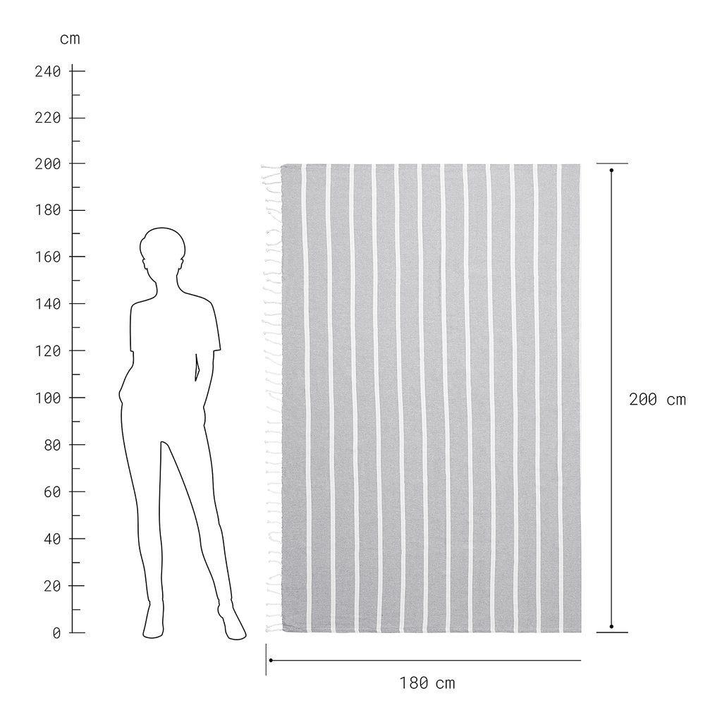 Ať už jdete na pláž nebo na piknik, určitě nezapomeňte s sebou do tašky zabalit praktickou a lehoučkou bavlněnou osušku SURFSIDE. Můžete ji využít i jako příjemnou deku nebo přehoz do Vašeho bytu. K dostání v dalších barevných variantách.