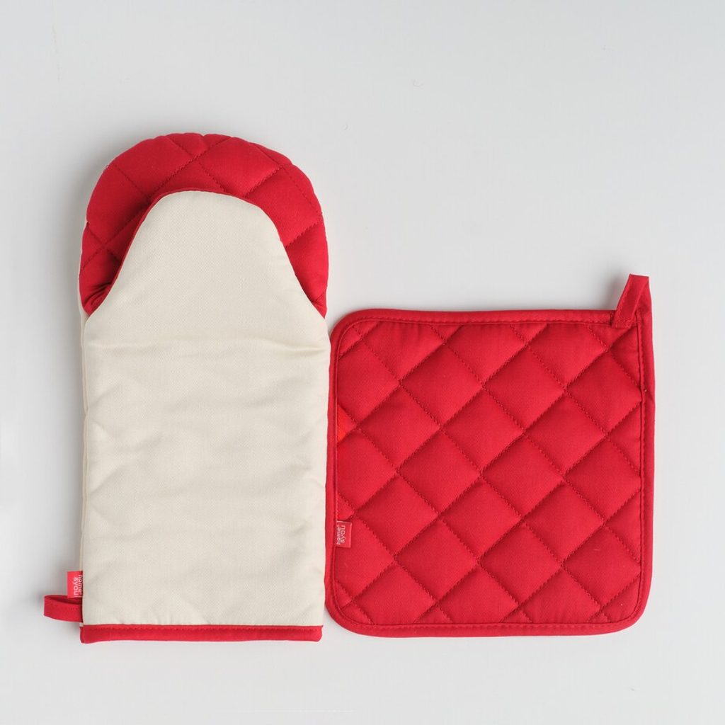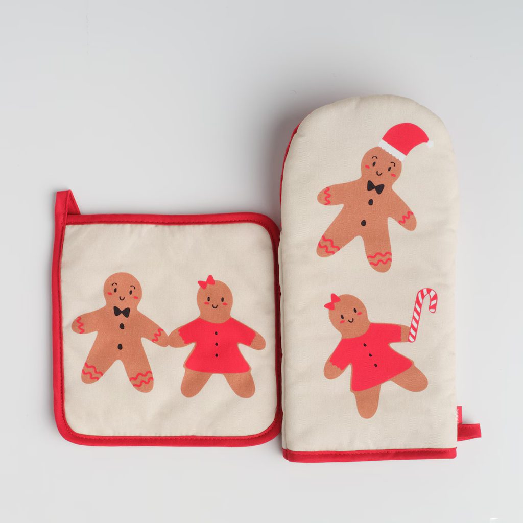 Tato sada se vzorem perníčků vnese do Vaší kuchyně veselou a sváteční atmosféru. Béžová základní barva a červené lemy evokují klasický vánoční styl, zatímco postavičky vykouzlí úsměv na tváři. Praktické a dekorativní - ideální společník pro zimní pečení.