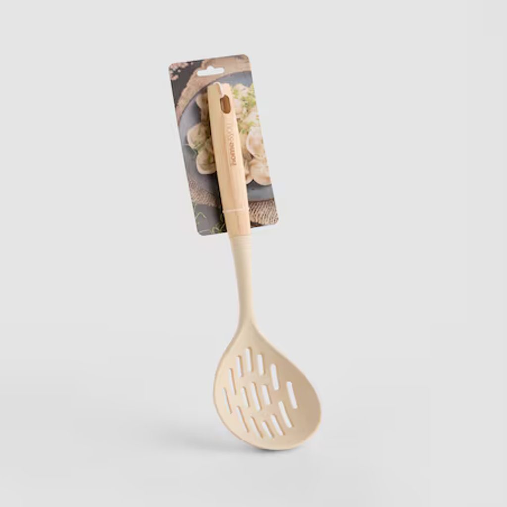 Praktické kuchyňské doplňky jsou skvělé, a pokud jsou zároveň stylové, jsou dokonalé. Tato naběračka splňuje obě kritéria. Rukojeť z bukového dřeva a silikonová hlava zajišťují pohodlné a spolehlivé používání při každodenním vaření.