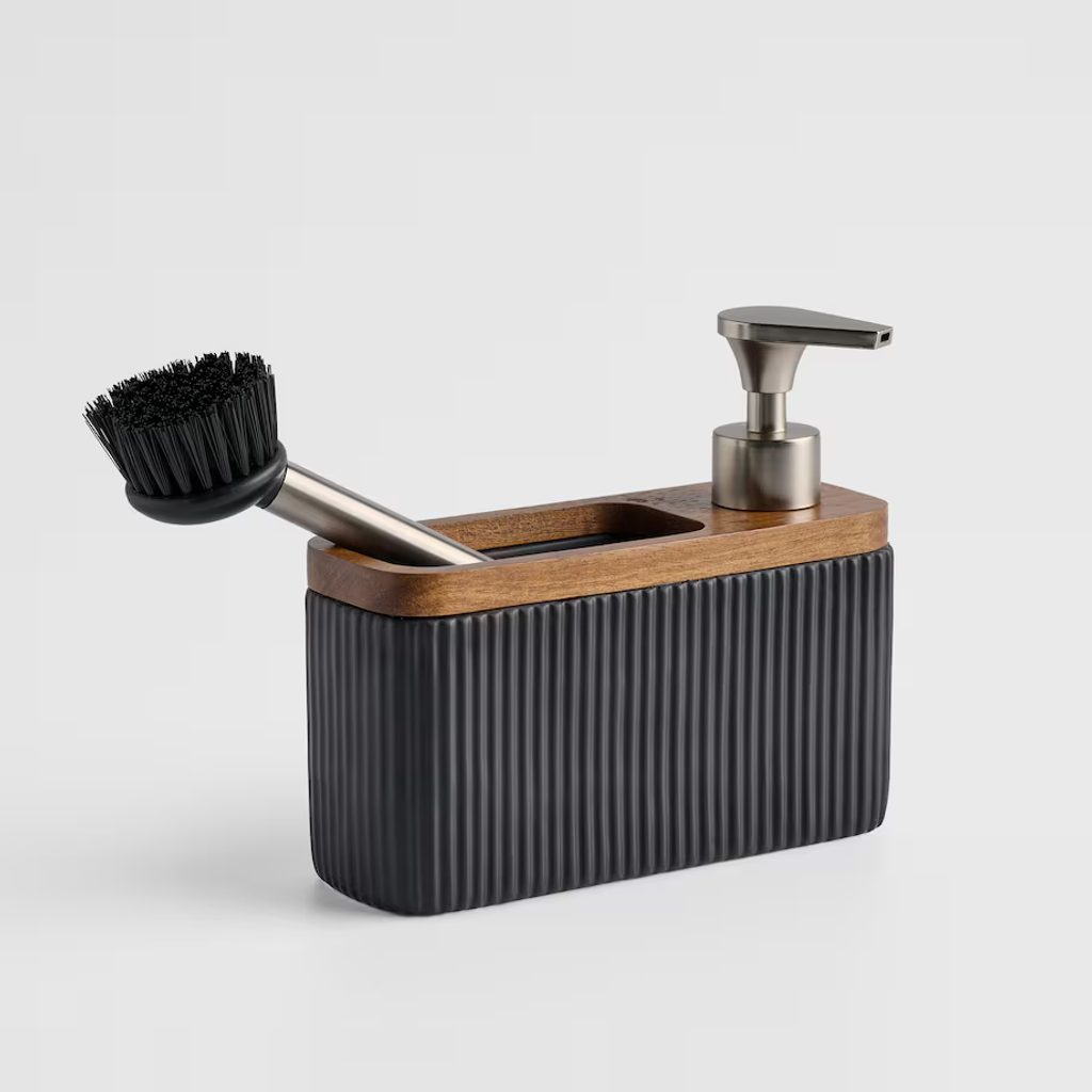 2 v 1: S tímto stylovým kuchyňským doplňkem vyřešíte uložení čisticího prostředku a kartáče v jednom kroku. Navíc díky jednoduchému designu se hodí do každé moderní kuchyně.