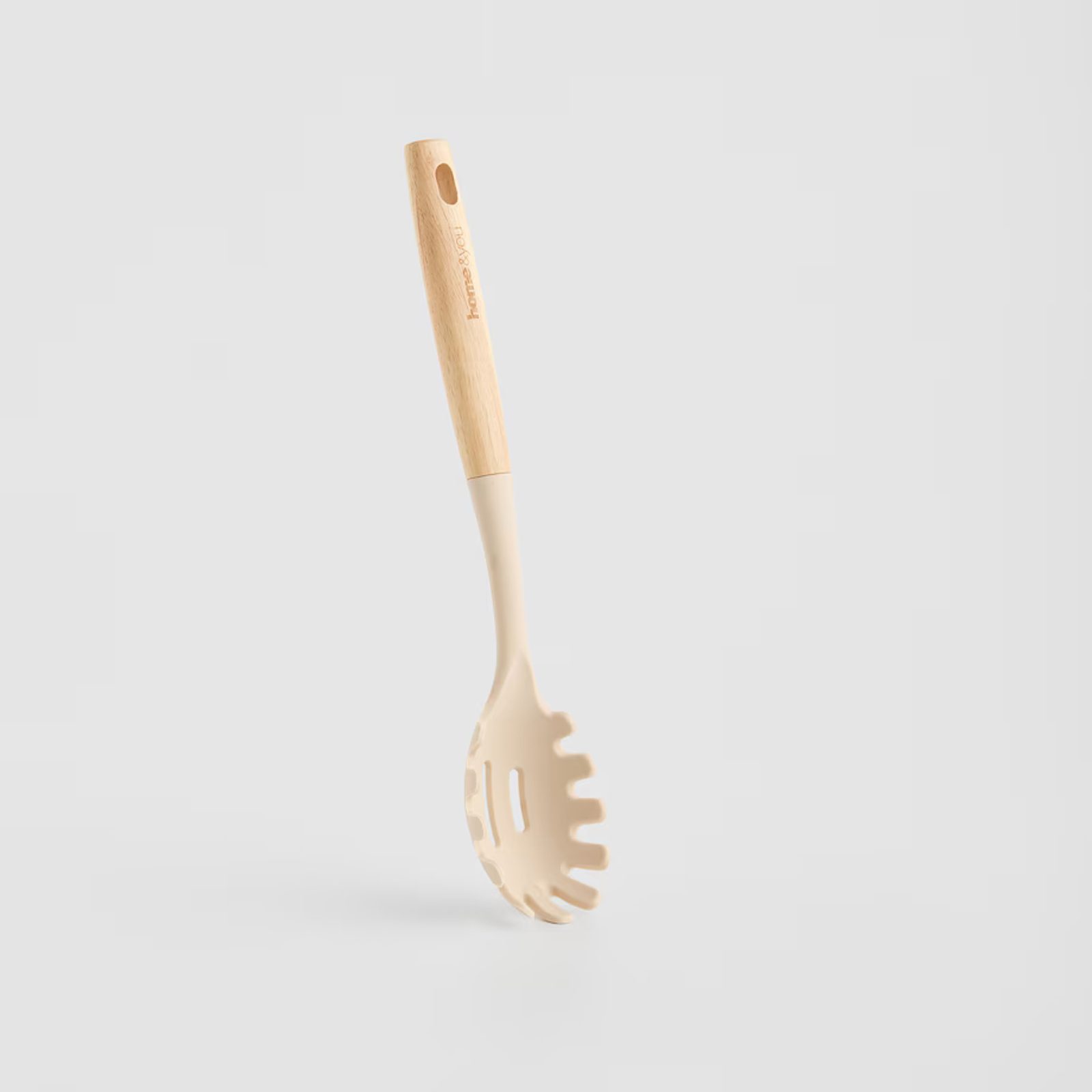 Praktické kuchyňské doplňky jsou skvělé, a pokud jsou zároveň stylové, jsou dokonalé. Tato naběračka na těstoviny splňuje obě kritéria. Rukojeť z bukového dřeva a silikonová hlava zajišťují pohodlné a spolehlivé používání při každodenním vaření.