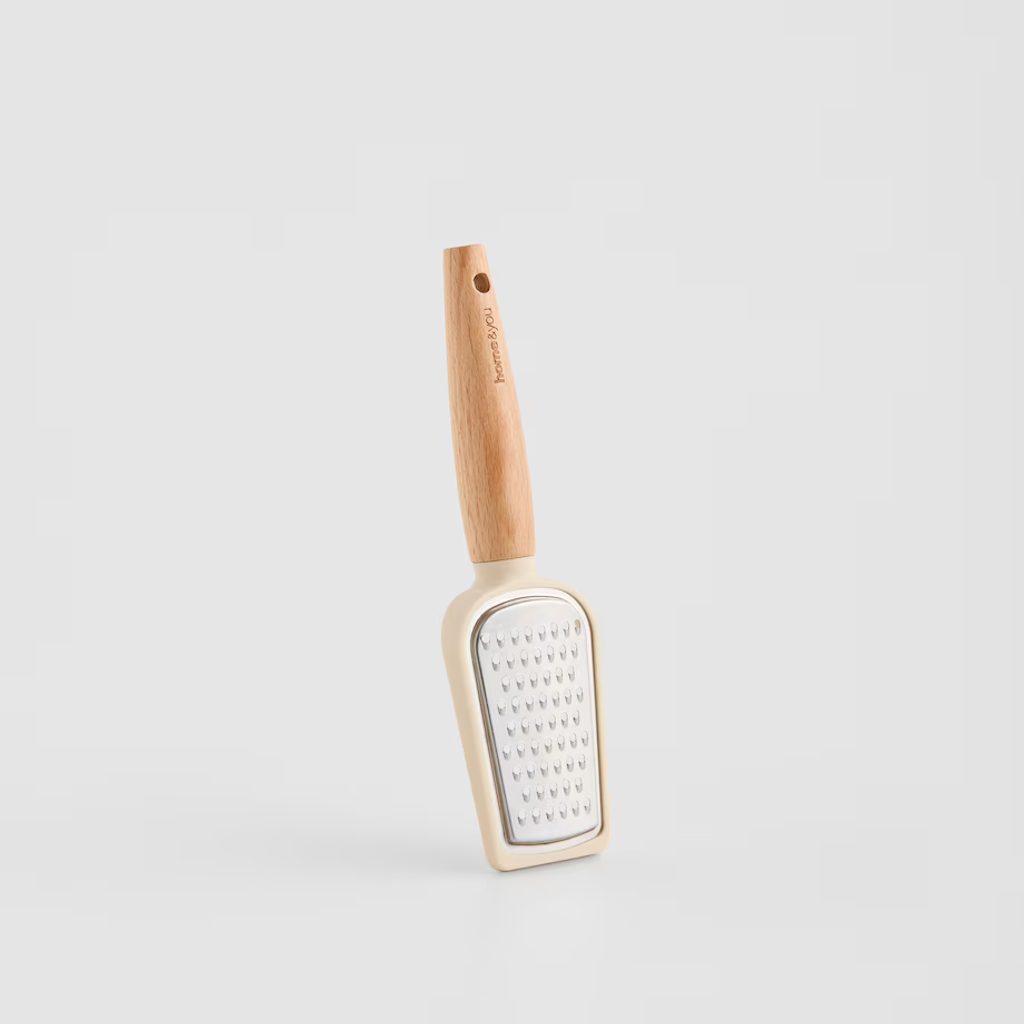 Praktické kuchyňské doplňky jsou skvělé, a pokud jsou zároveň stylové, jsou dokonalé. Toto struhadlo splňuje obě kritéria. Rukojeť z bukového dřeva a ocelová hlava zajišťují pohodlné a spolehlivé používání při každodenním vaření.