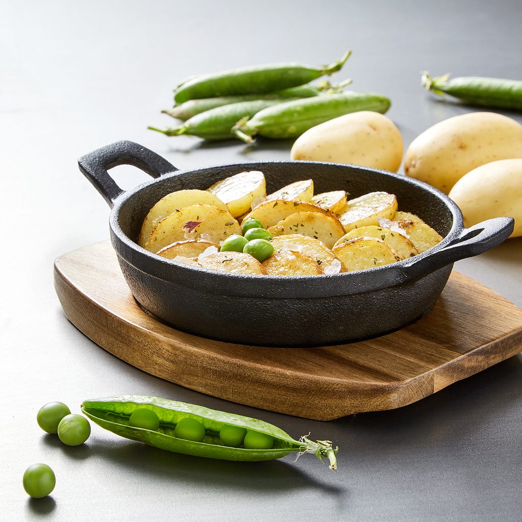 Opatrně, tohle je horké! Se servírovací pánví HOT IRON naservírujete své pokrmy ještě horké a bez zbytečných prodlev. Jako byste Vaše steaky, sýrové těstoviny či pečené brambory právě sundali ze sporáku a položili na prostřený stůl. V černé pánvi z litiny vydrží Vaše jídla déle teplá a díky dřevěnému podnosu z akátového dřeva přizpůsobenému dnu pánve bude Váš stůl bezpečně chráněný před horkem. Bon Apetit!