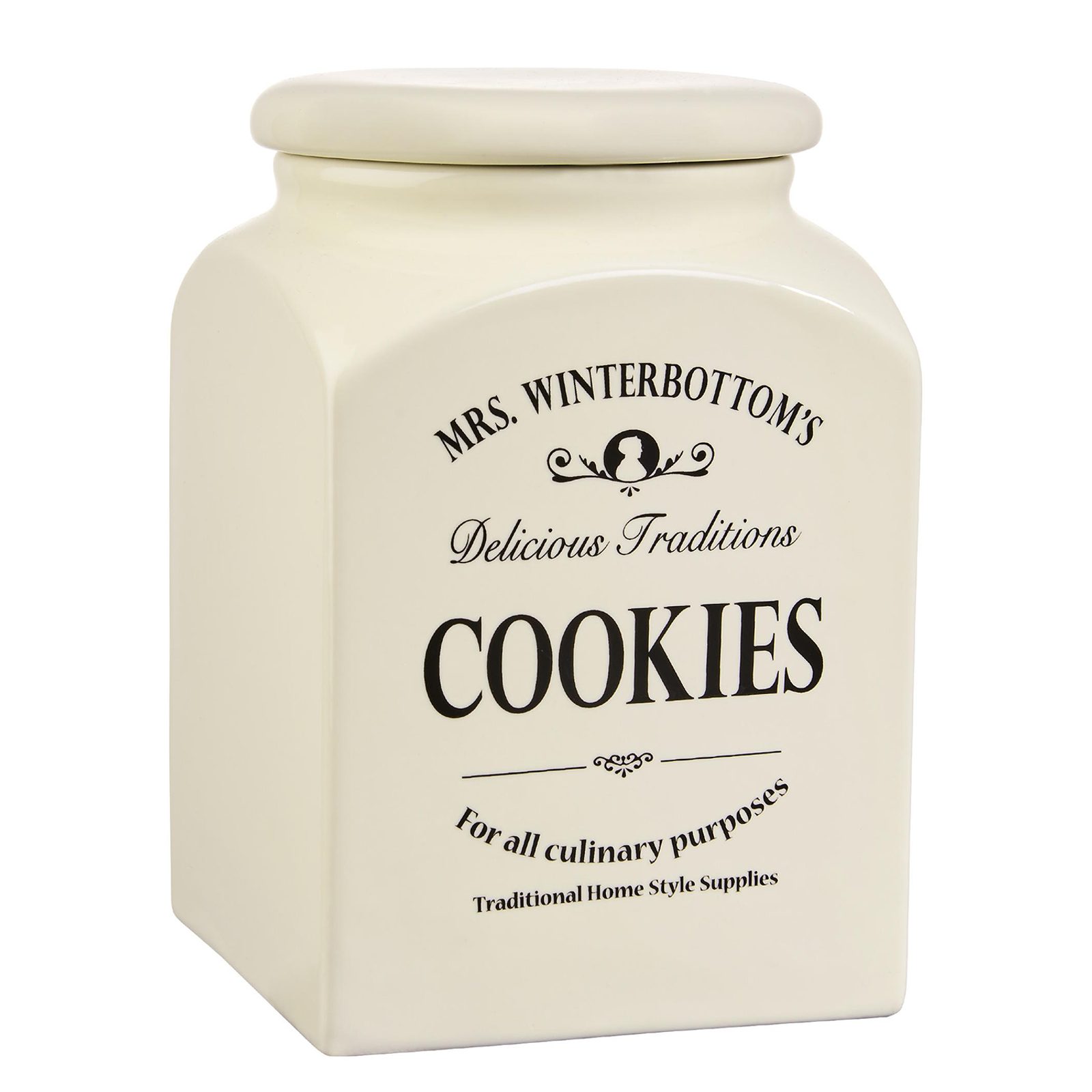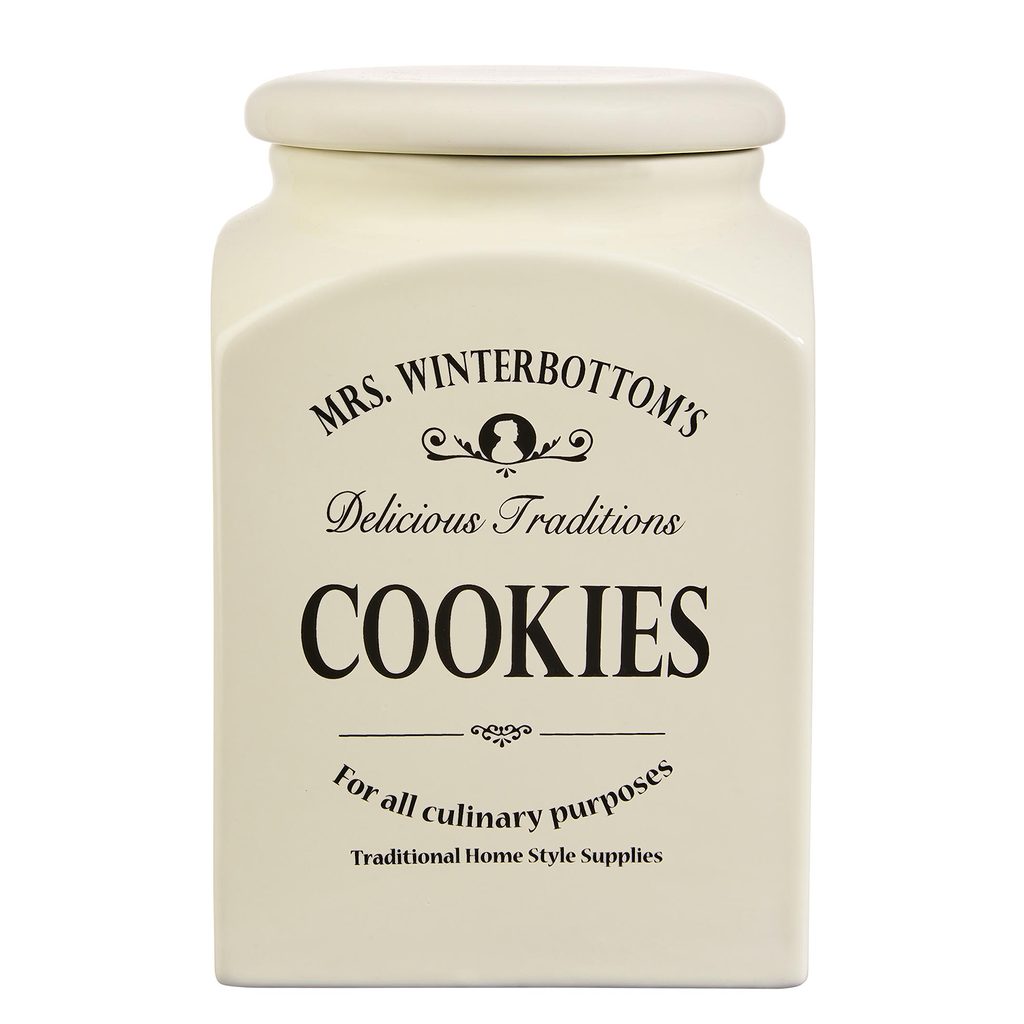 Aby se pečení zase vyplatilo přijde vhod dóza na sušenky, která nepohrdne žádnou sladkostí. Řada MRS. WINTERBOTTOMS myslí na každého a na všechno. Uchovat nebo servírovat na stůl se dá díky tradičním dózám, lahvím hrncům, miskám, konvičkám prakticky cokoliv. Vyrobeno z kameniny exkluzivně pro Butlers, s typickým anglickým dekorem. A samozřejmě k sobě všechno padne tak jako poklice na hrnec nebo nálevka do hrdla lahve.