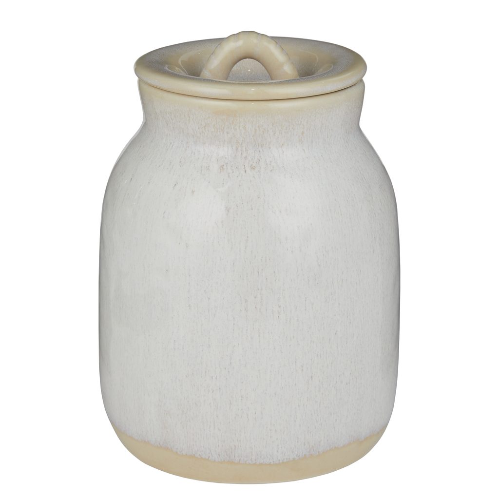 Kameninová dóza PORTIMAO se perfektně hodí k modernímu venkovskému stylu a je ideální například pro uchovávání a servírování soli či cukru. Tato dóza s víkem, jako doplněk stolu, přináší uvolněnou, domácí atmosféru a středomořský nádech. Reaktivní glazura se skvrnitým efektem činí každý kus jedinečným.