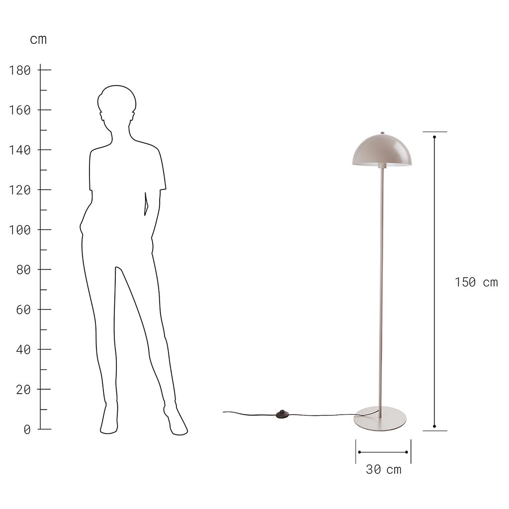 Stojací lampa TOPEE je skutečnou individualitou. Výrazný hřibovitý tvar jí dodává retro nádech, zatímco módní béžová barva jí propůjčuje moderní vzhled.