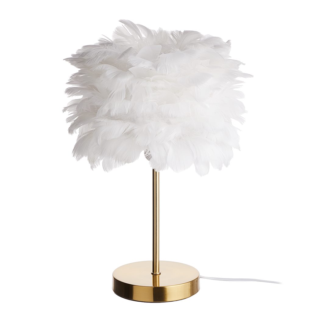 Stolní lampa FIORELLA s peřím se vznáší nad Vaším posezením jako lehounký obláček. Její elegantní vzhled podtrhuje podstavec ze zlatavého kovu v kombinaci s čistým minimalistickým designem. Tato lampa nejen ozdobí Váš interiér, ale také vytvoří příjemné ambientní osvětlení. K dispozici je i odpovídající stojací lampa.