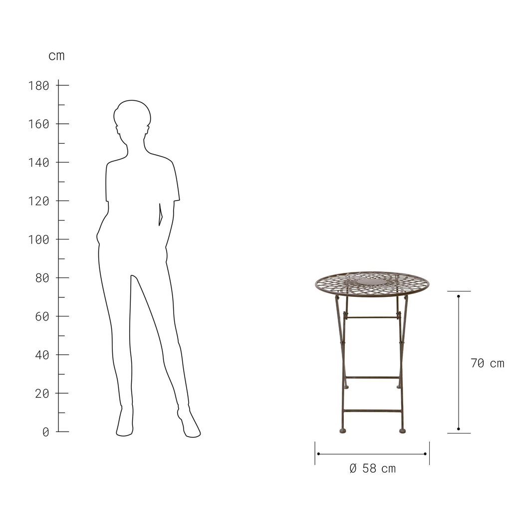 Rozměry: stůl: průměr 58 cm, V 70 cm, židle: Š 41 x H 56 x V 93 cm