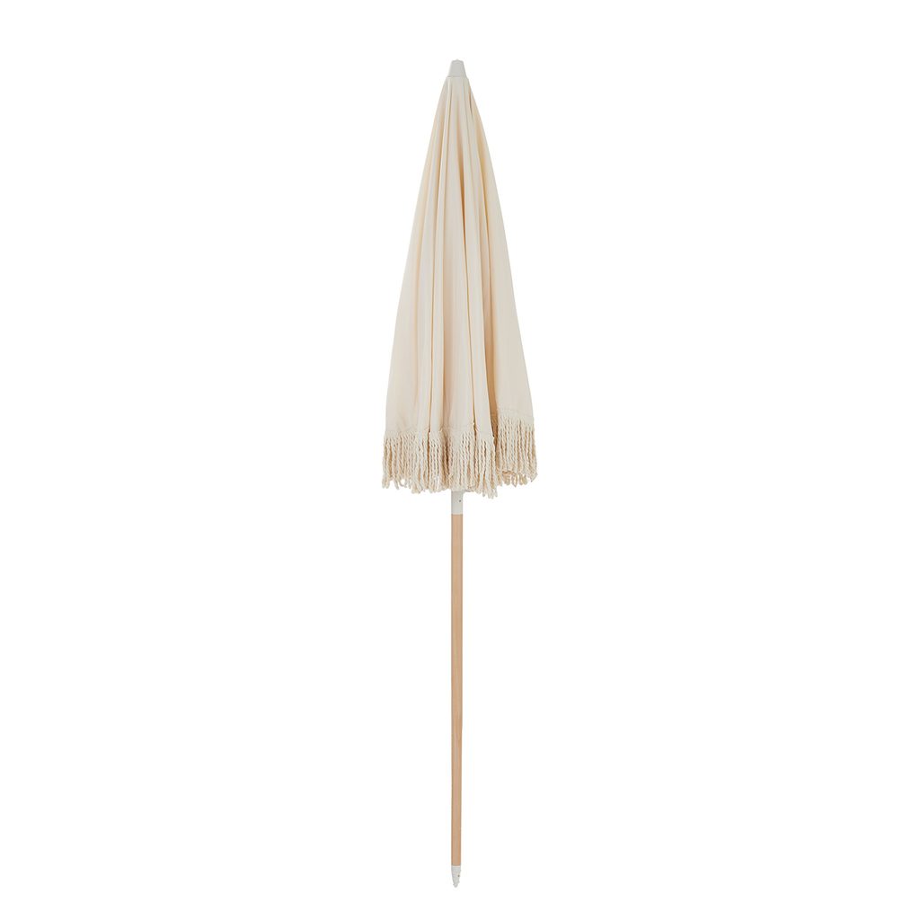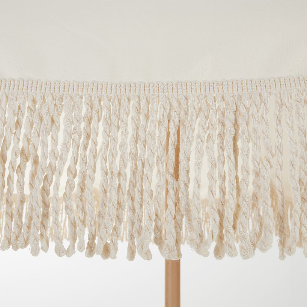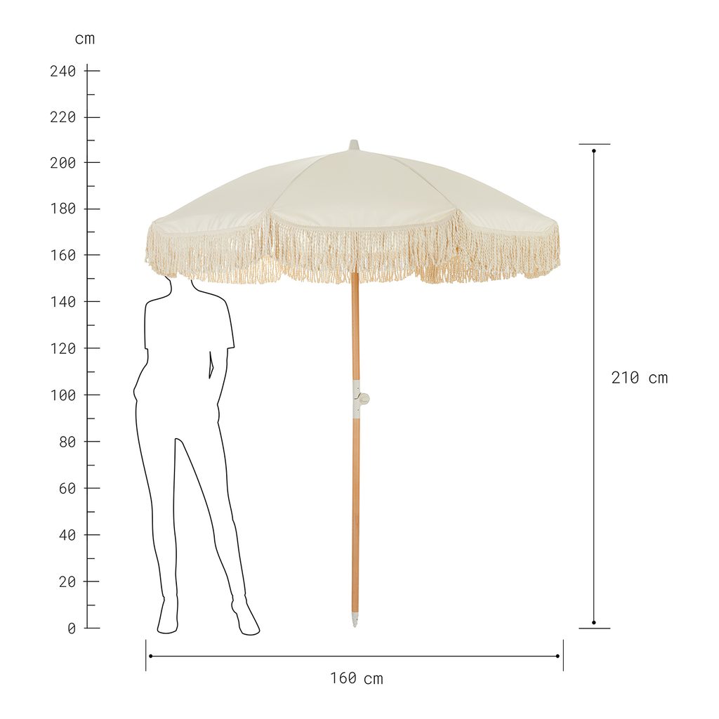 A všechno už vypadá jako na Ibize! Se slunečníkem BOHO LOUNGE proměníte i nejbližší břeh jezera nebo balkón v malý prázdninový ráj. Stačí jej vzít s sebou, otevřít a užívat si dokonalou pohodu pod slunečníkem o průměru 180 cm s UV ochranou 80. Jemné bavlněné třásně se lehce pohupují ve vánku, zatímco relaxujete. Stabilitu a pevnost zajišťuje tyč z bukového dřeva o průměru 35 mm.