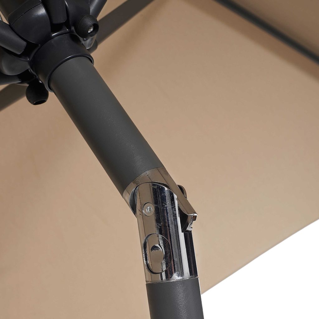 Rozměry: V 240 cm, průměr 2,5 m, výška náklonu 183 cm, tyč deštníku průměr 48 mm