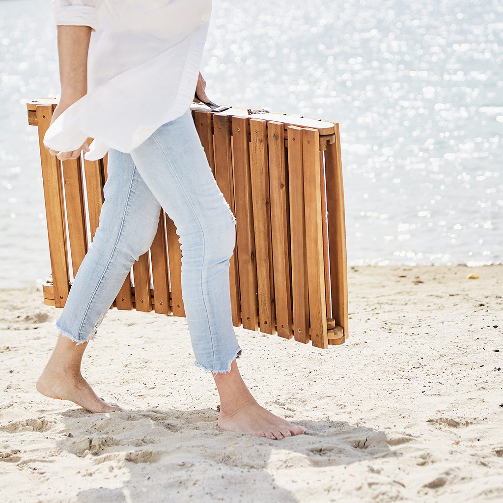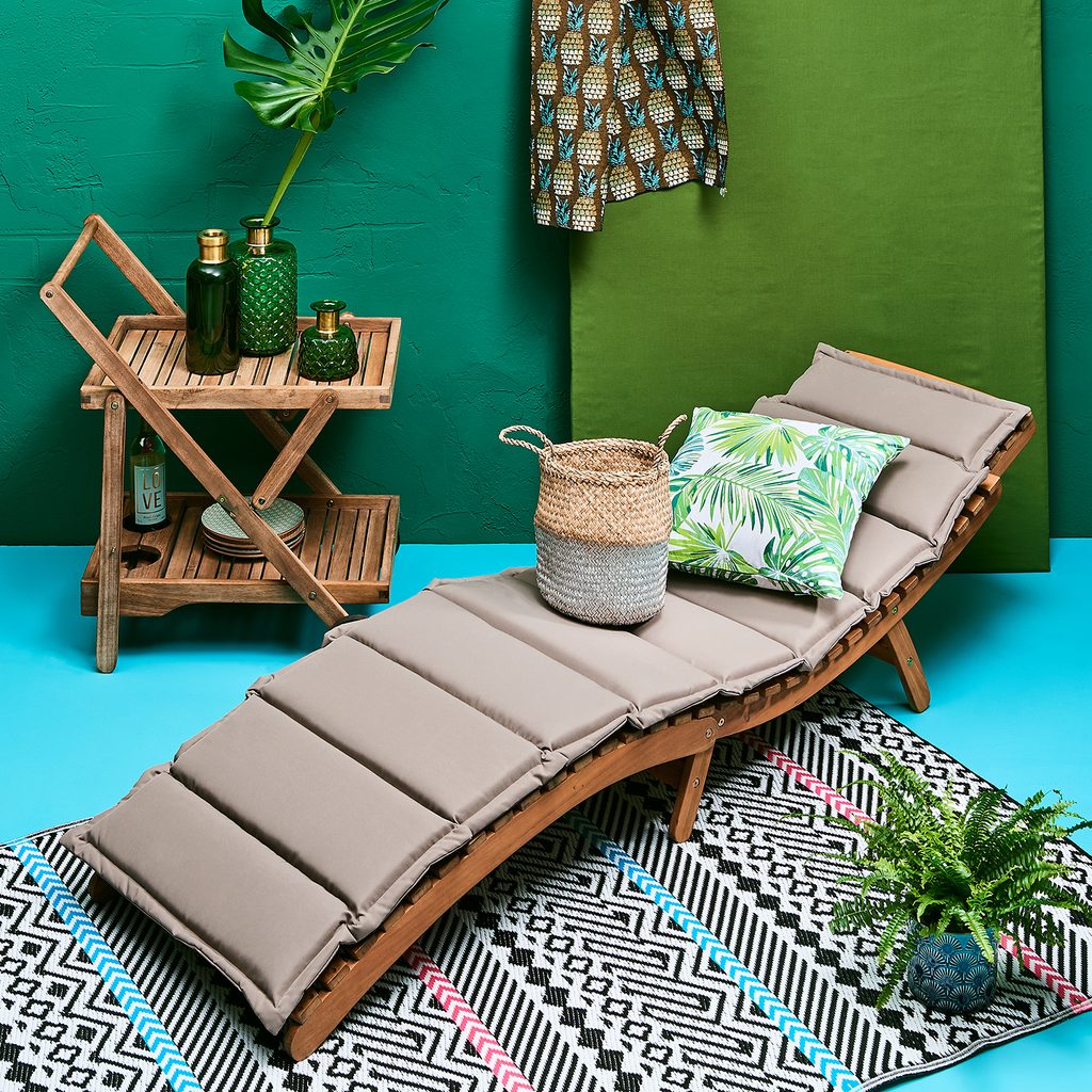 Komfort na cesty. Skládací lehátko SUN WAVER z akátového dřeva lze snadno přenést z místa A do místa B a díky prohnutému tvaru a polstrování Vám i při odpočinku poskytne své komfortní služby.