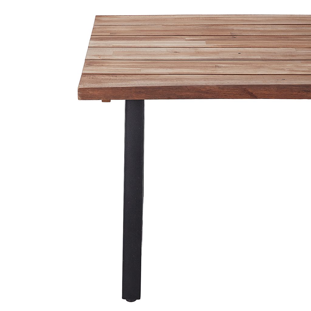 Stůl TORRENCE je ideální volbou pro balkon, terasu nebo zahradu a pohodlně usadí až 6 osob. Moderní design stolu kombinuje grafický železný rám s deskou z akáciového dřeva s certifikátem FSC, které je přirozeně odolné vůči povětrnostním vlivům a plísním. Tvar rámu zároveň zajišťuje pevnou stabilitu, což oceníte zejména při rodinných setkáních nebo zahradních slavností.