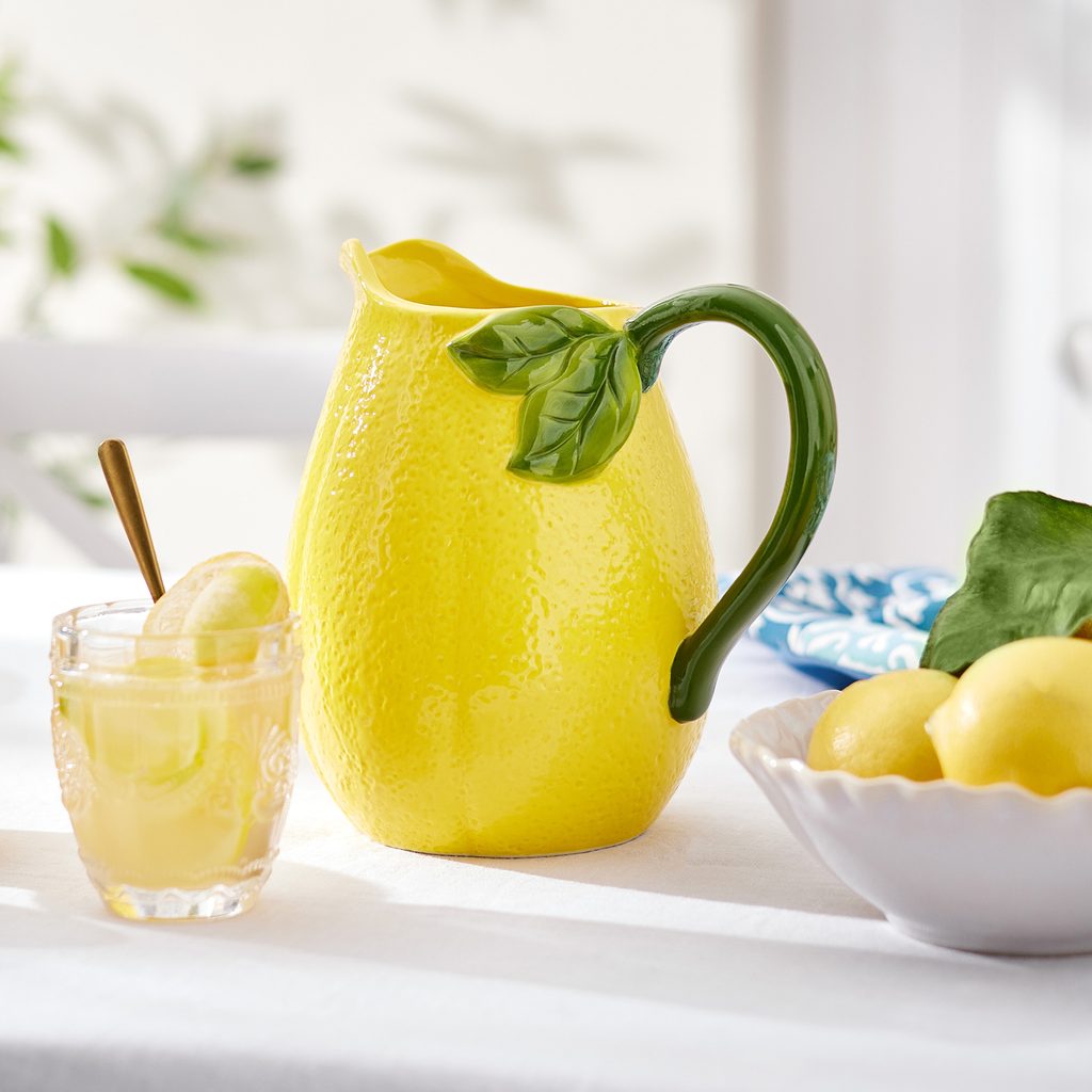 Potřebujete osvěžení? Servírujte domácí limonádu nebo chladivou limetkovou vodu stylově v dekorativním džbánu LEMON z dolomitu. Tento žlutý džbán ve tvaru citronu dodá Vašim osvěžujícím nápojům špetku hravosti a jedinečný vzhled.
