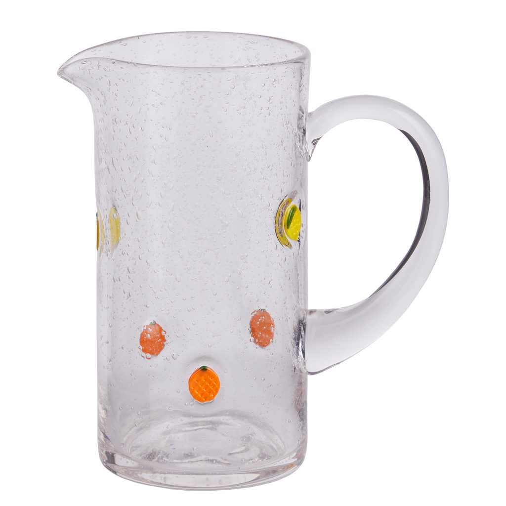 Barevné citrusové plody oživují design skleněné konvice LIMO s motivy citronu či pomeranče. Džbán z čirého skla s jemnými vzduchovými bublinkami je ideální na vodu, džusy i osvěžující ledový čaj.