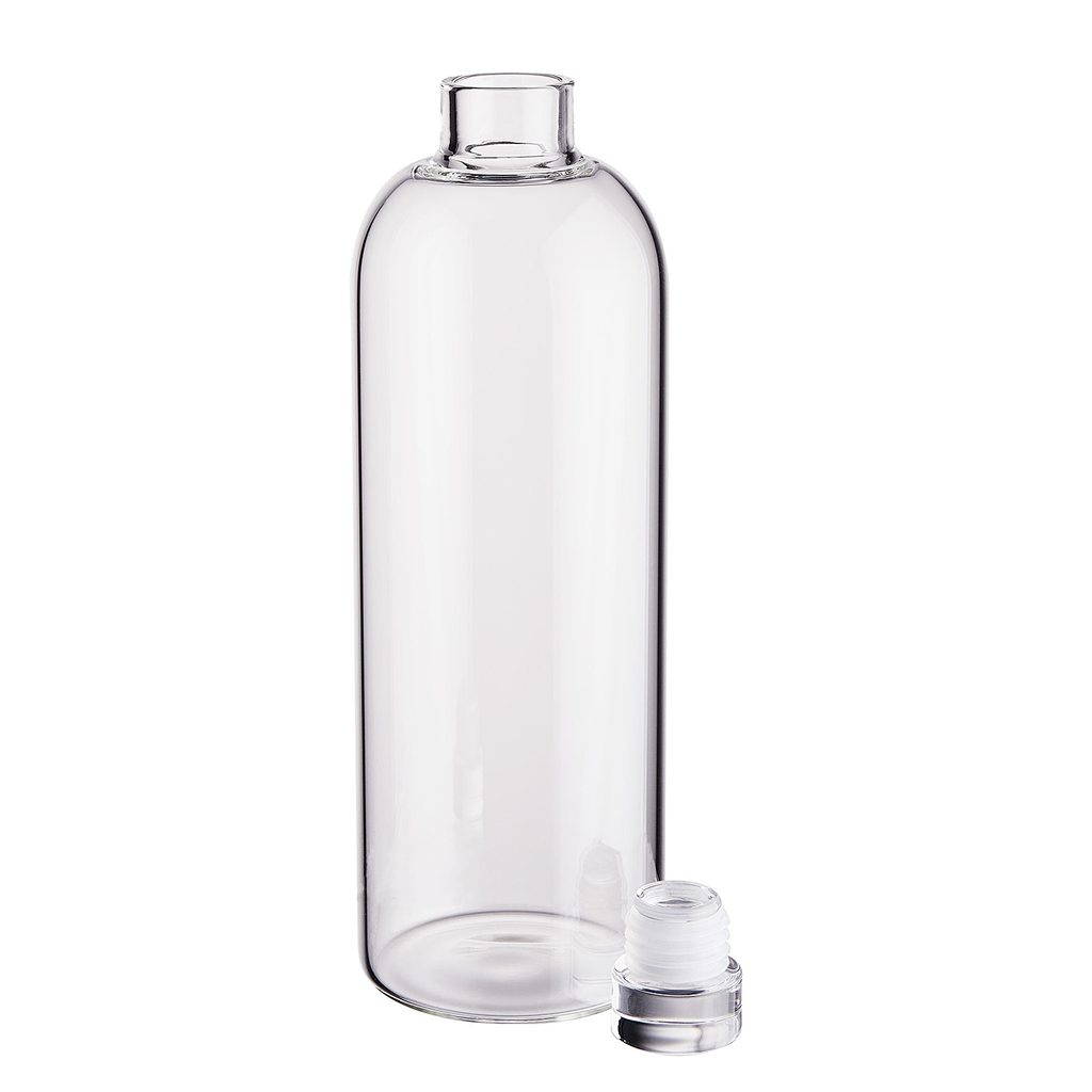 Dodržovat pitný režim je mnohem snazší, pokud máte láhev na vodu RATIO z moderního robustního borosilikátového skla po ruce při jídle, práci i odpočinku. Tato opakovaně použitelná skleněná láhev pojme celý litr studené vody a lze ji uzavřít skleněnou zátkou.
