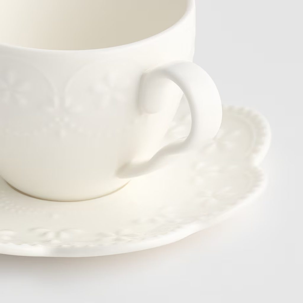 Šálek s podšálkem květinová krajka 180 ml - bílá